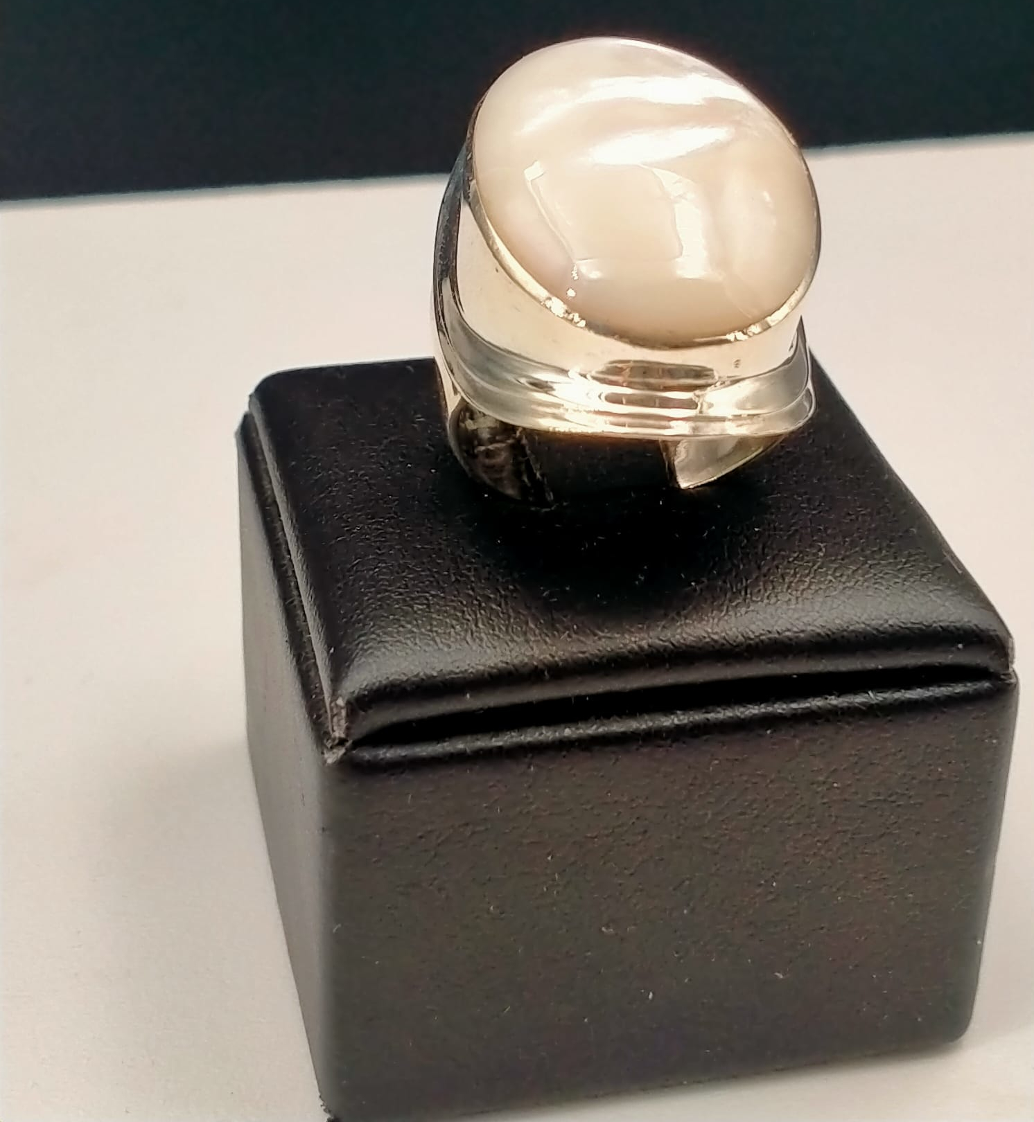 Anello in argento 925 che esprime la sua eleganza attraverso l’incastonatura di una purissima pietra in madreperla