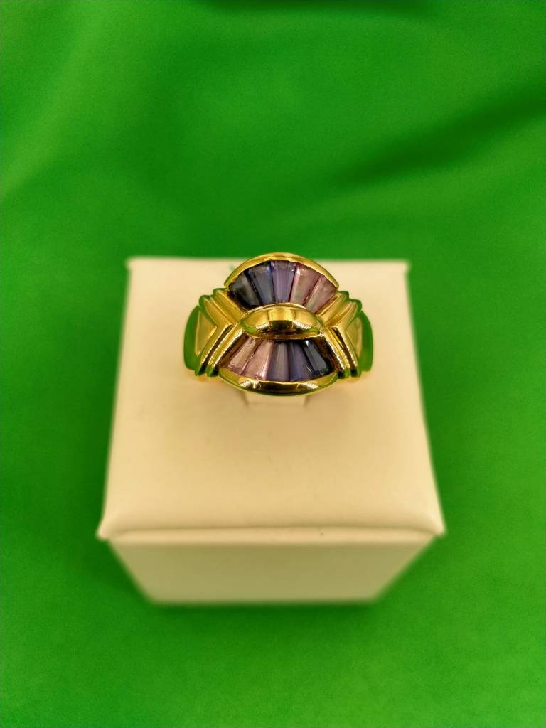 Anello in oro giallo 18 carati con preziose ametiste bicolore